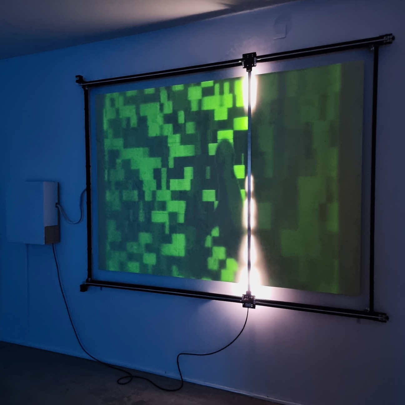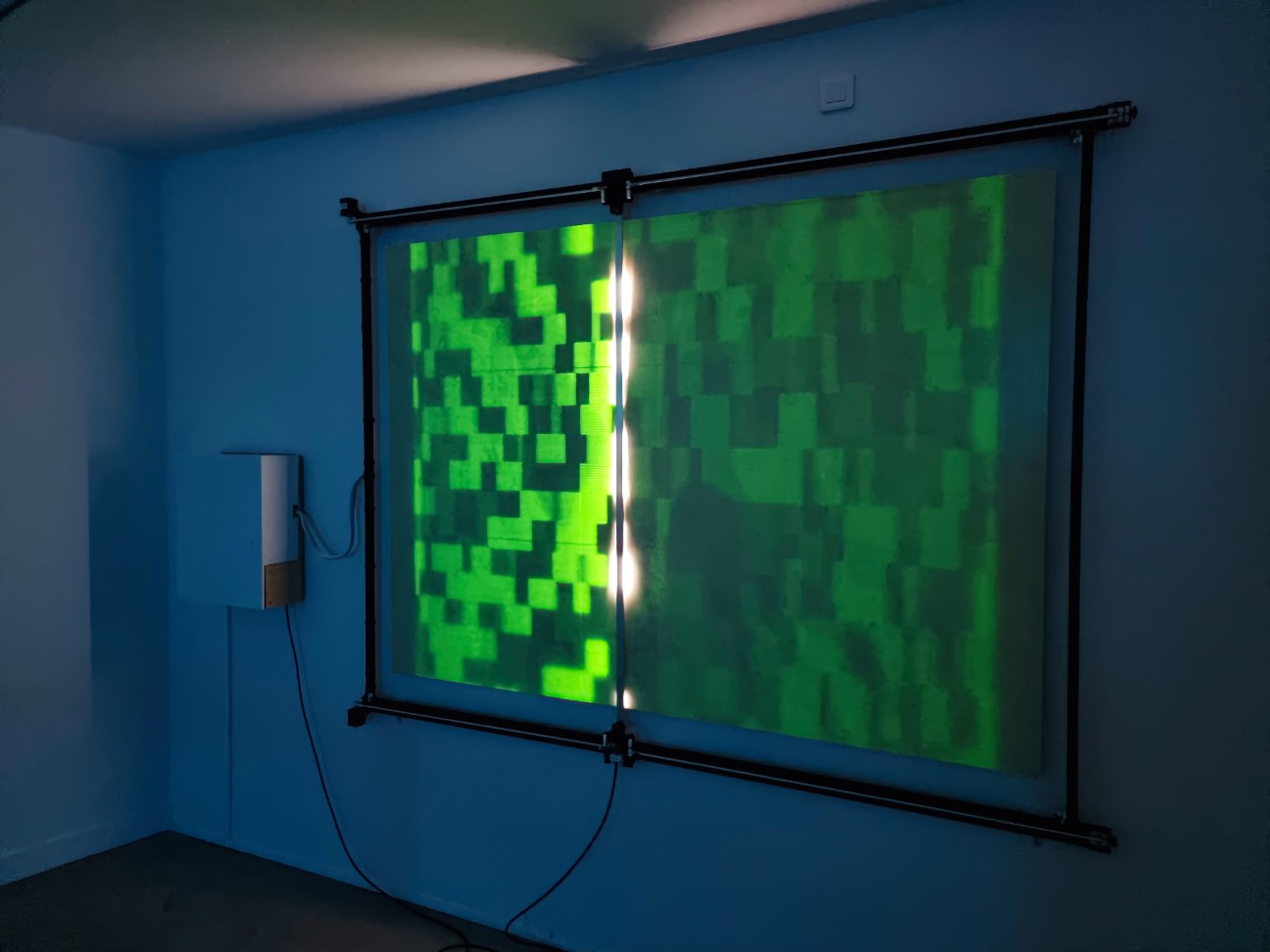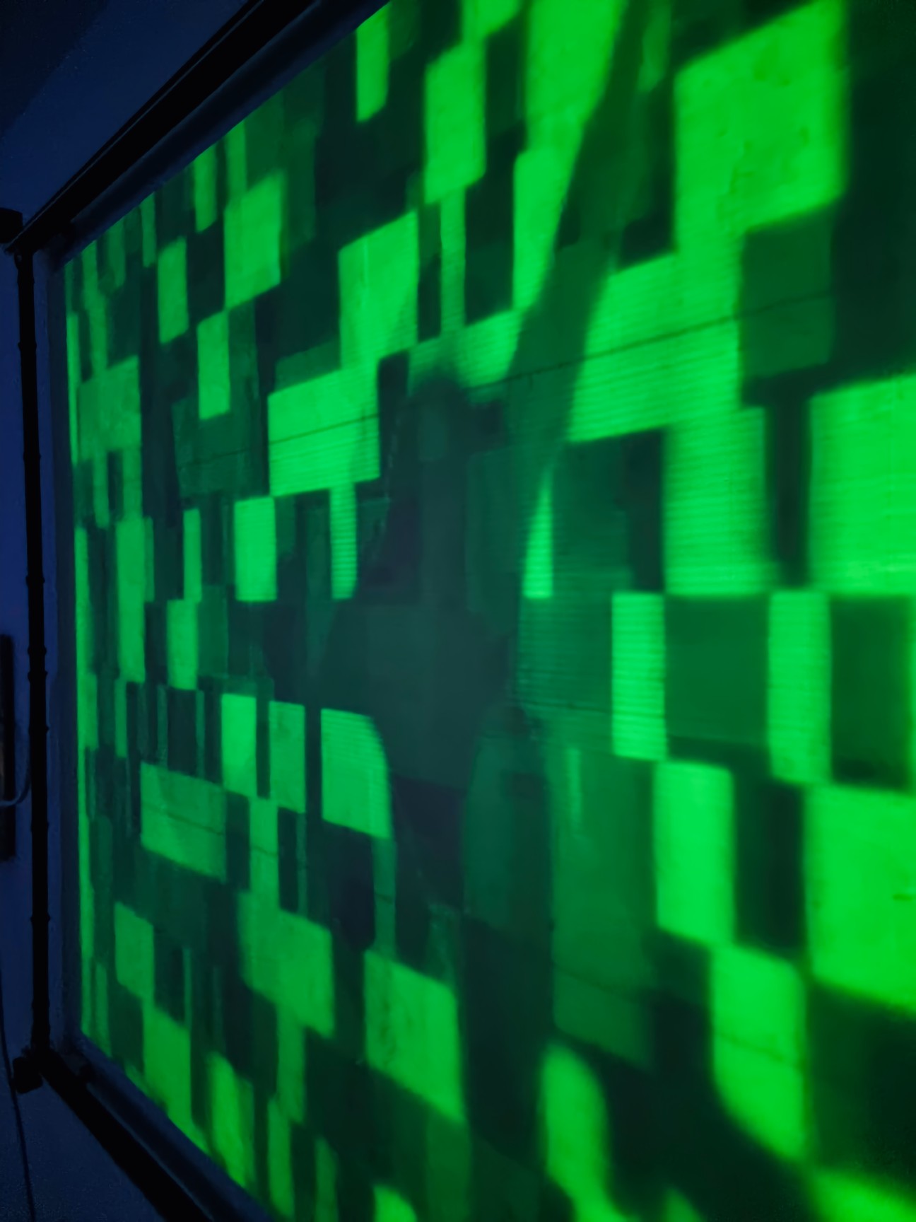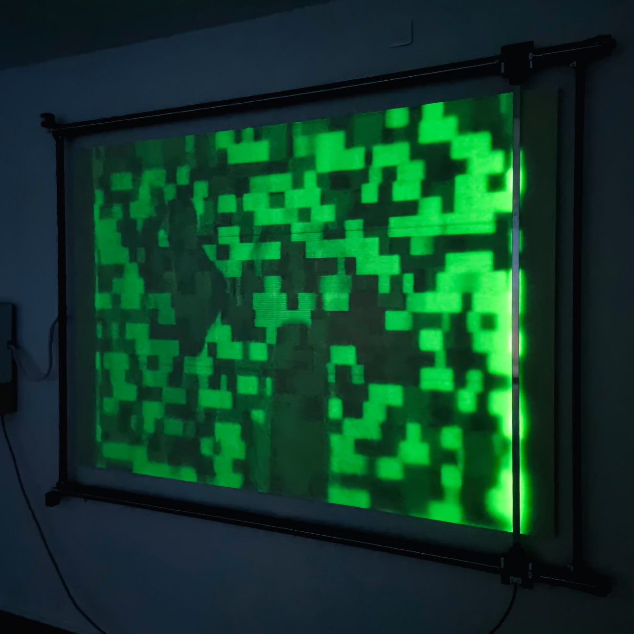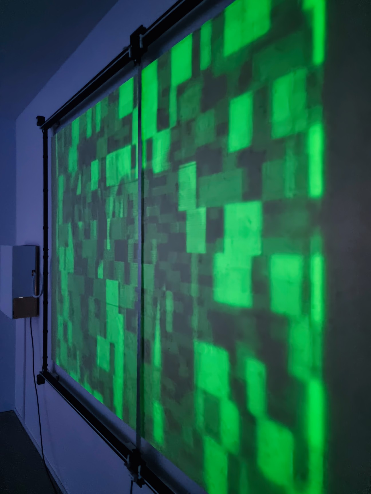 TRACES is an installation exploring light and ephemeral phosphorescence, a pixel-by-pixel display that fades and reappears over time, like a cryptic, encoded litany recited silently. TRACES offers a reflection on the transient nature of all things and our relationship to memory, questioning the digital footprints we leave behind, consciously or unconsciously, and their use without our knowledge by opaque algorithms.