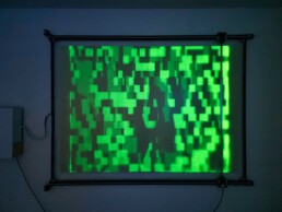 TRACES est une installation autour de la lumière et de la phosphorescence éphémère, un affichage pixel par pixel s’effaçant et se repassant au fil du temps, comme une litanie cryptique et encodée déclamée silencieusement. TRACES propose une réflexion sur le caractère éphémère de toute chose et sur notre rapport à la mémoire, un questionnement sur les empreintes numériques que nous laissons derrière nous consciemment ou involontairement, et à leur utilisation à notre insu par des algorithmes opaques.